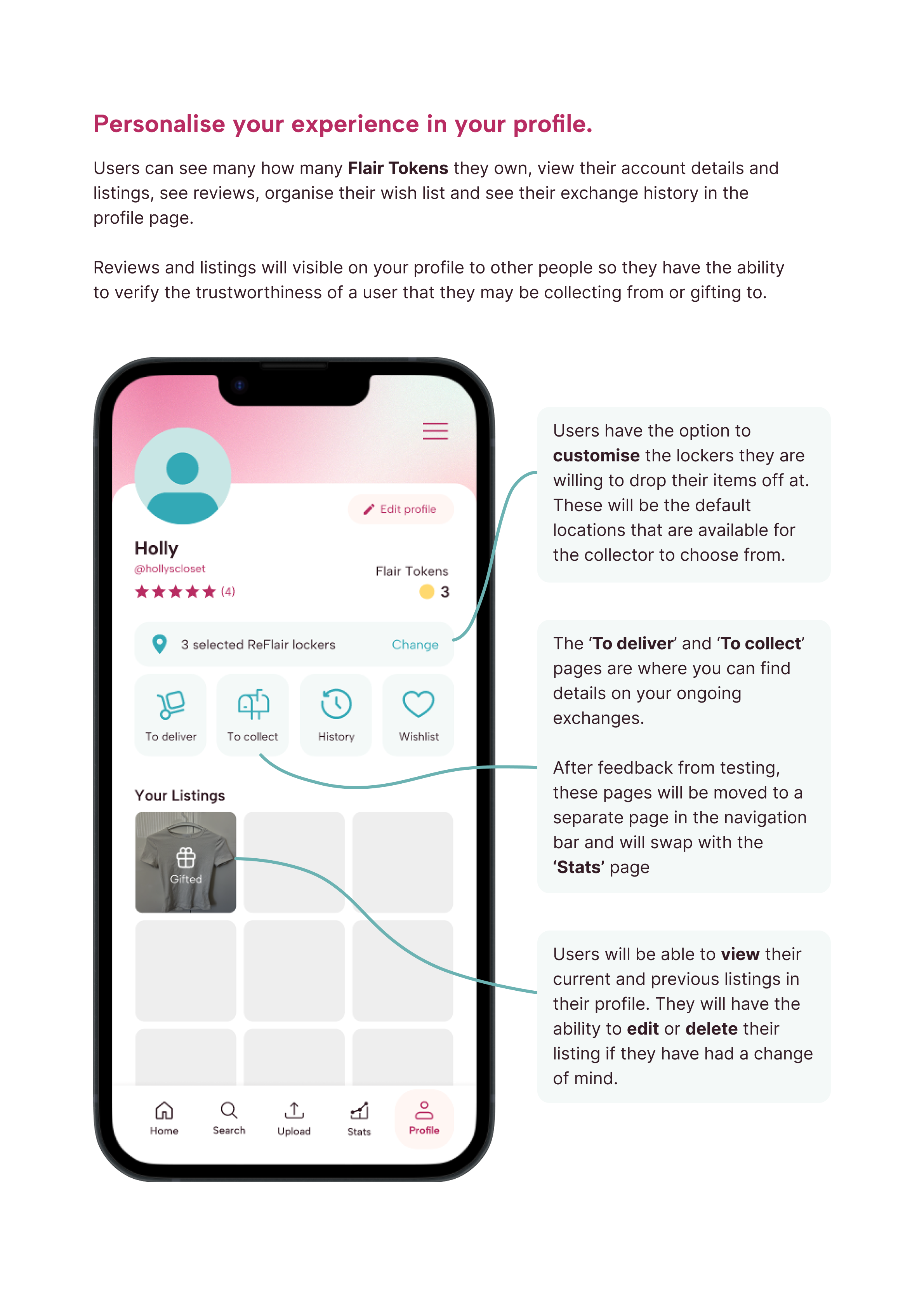 sers struggled with navigation due to low visibility of key features, prompting layout adjustments and the addition of an ‘Orders’ tab. Concerns around locker security and user trust highlighted the need for clearer feedback cues and stronger profile credibility. Confusion about Flair tokens revealed the need for improved onboarding to better align with user expectations