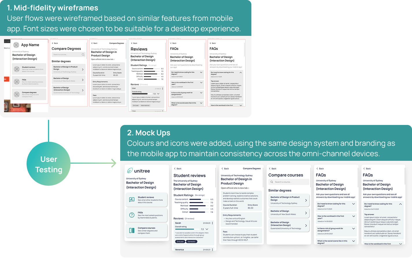 Unitree is an omni-channel application designed to foster connection and interaction between students, to reach out to others to seek information regarding their experiences, while also supporting their needs to compare university degrees and access university resources.