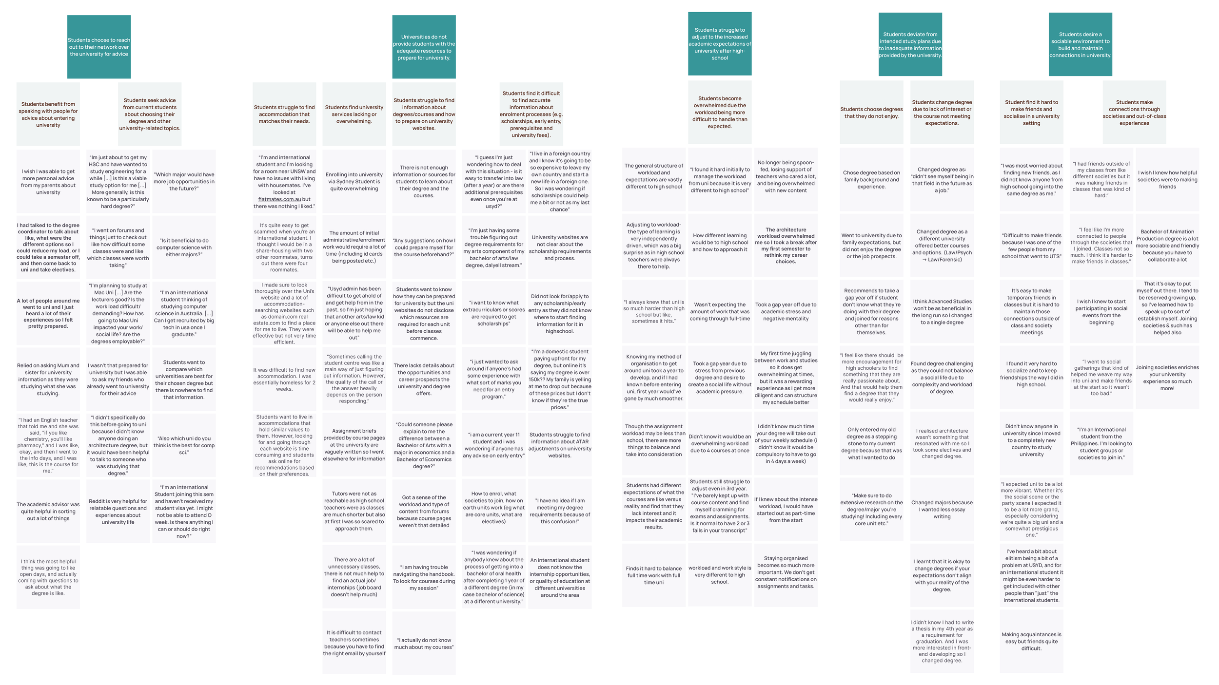 Students sought out knowledge from friends, online forums and advisors to gain a better understanding of university life. This leads us to understand that students benefit more from personally curated advice that answers directly to their concerns.